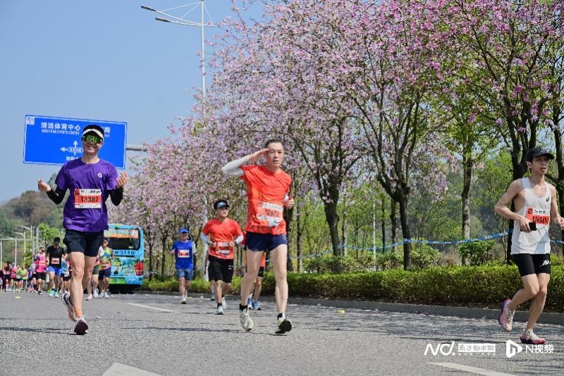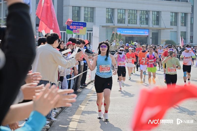 为了营造浓厚的赛事氛围,组委会在赛道沿线设置展演、加油、打卡氛围点共计61处。两座大桥上,身穿壮、瑶民族服饰的“清马宝贝”啦啦队与跑者们击掌助威;广东岭南职业技术学院内的“超长”氛围点,用长达1公里的热情与青春活力把气氛“拉满”,助力跑者们一路向前。